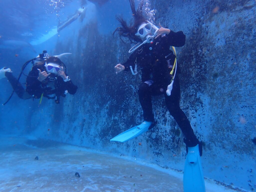 なんとここは水族館の水槽でダイビングすることが出来る所なんです😆